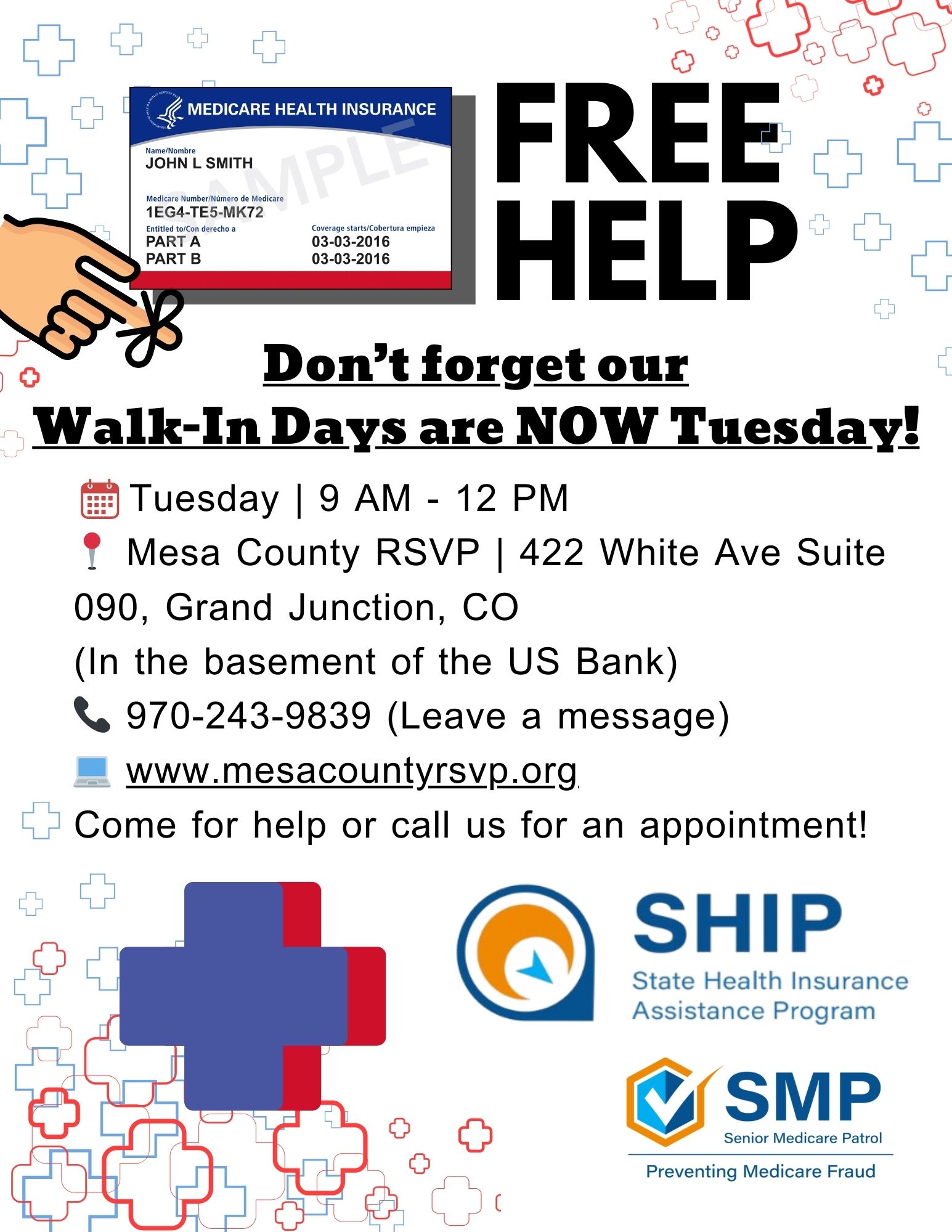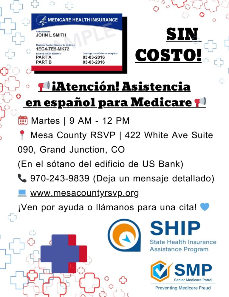 The Senior Medicare Patrol (SMP) empowers and assists Medicare beneficiaries, their families, and caregivers to prevent, detect, and report health care fraud, errors, and abuse. Mesa County RSVP’s SHIP counselors are here to answer your questions. Advice is free, confidential and objective.