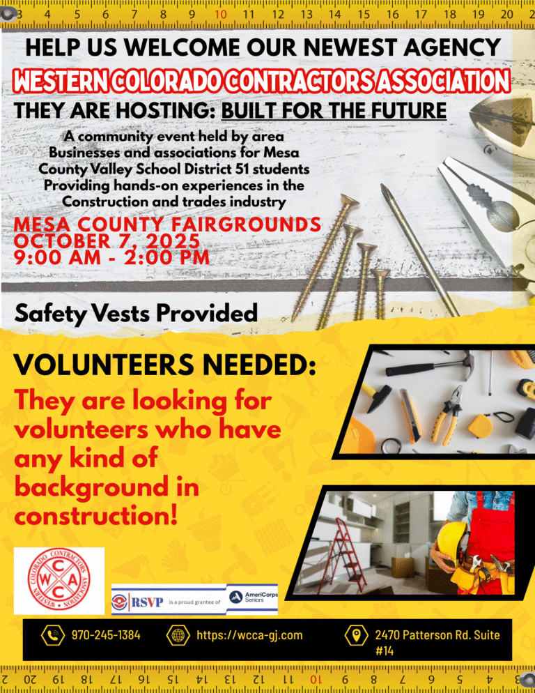Your donations help RSVP strengthen our community by engaging volunteers ages 55 and over. Each volunteer placement provides community programs with essential support. Thank you for strengthening Mesa County! All donations to RSVP are tax-deductible.